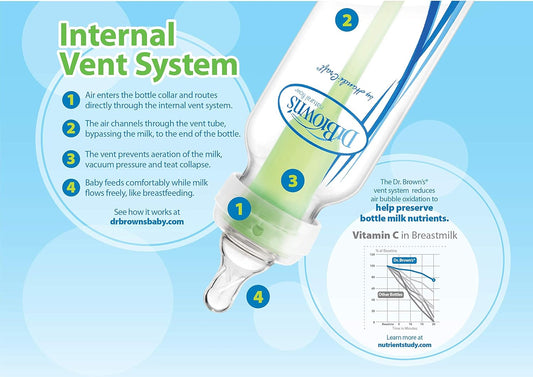 Dr. Brown's Natural Flow Anti-Colic Options+ Wide-Neck Baby Bottles 9 oz/270 mL,with Level 1 Slow Flow Nipple,4 Count,0m+